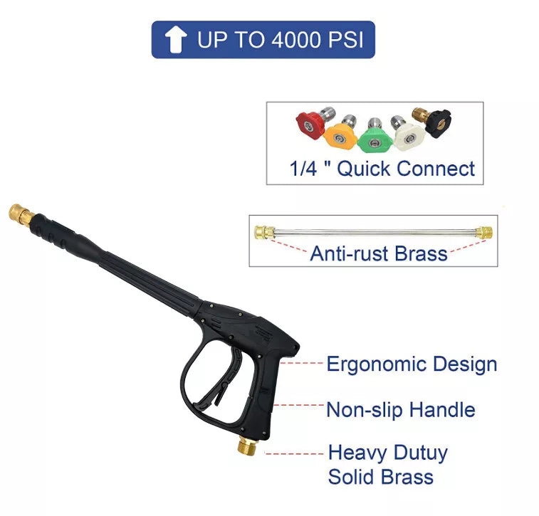Healthadss ™ 4000PSI High Pressure Power Washer Spray Gun Wand Lance Quick Nozzle Tips Kit