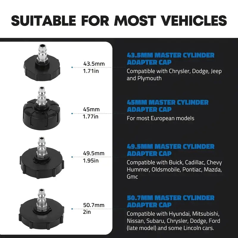 🌟Brake vacuum bleeder kit comes with 4 master cylinder adapters